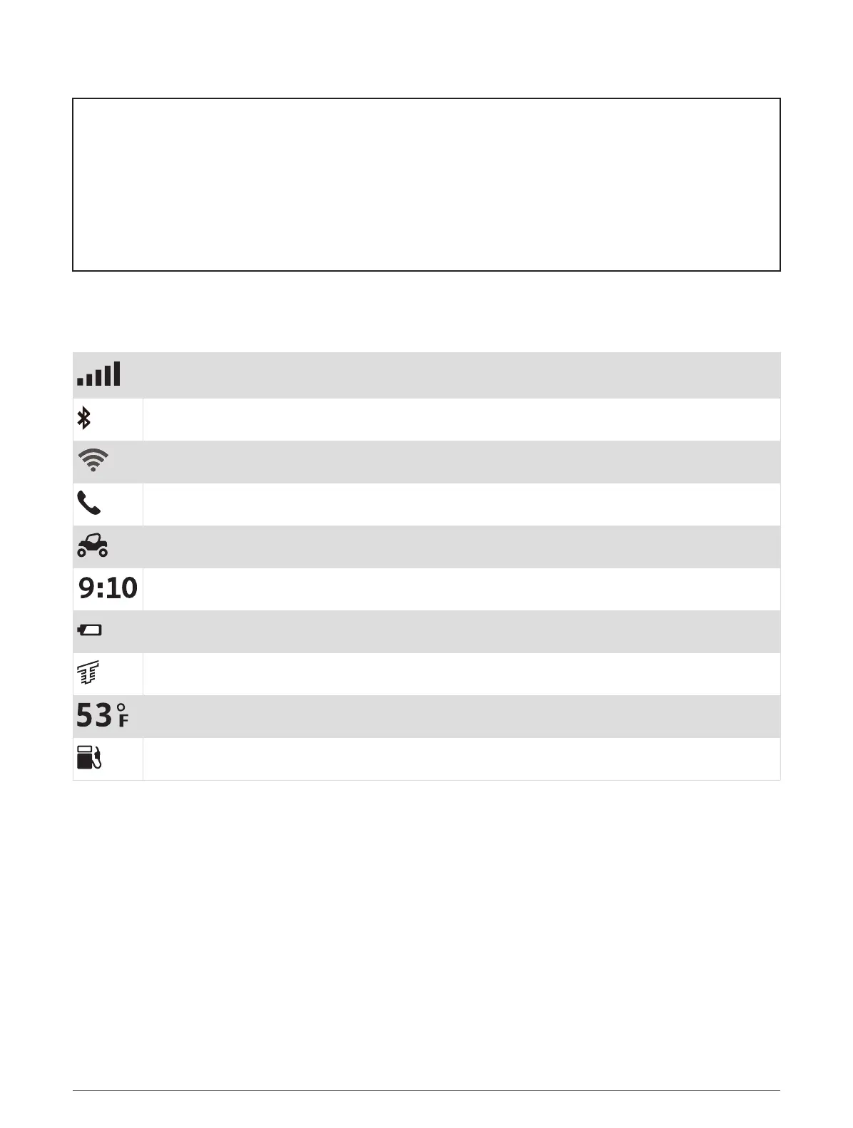 on the device. You can select some icons to change settings or view additional information.