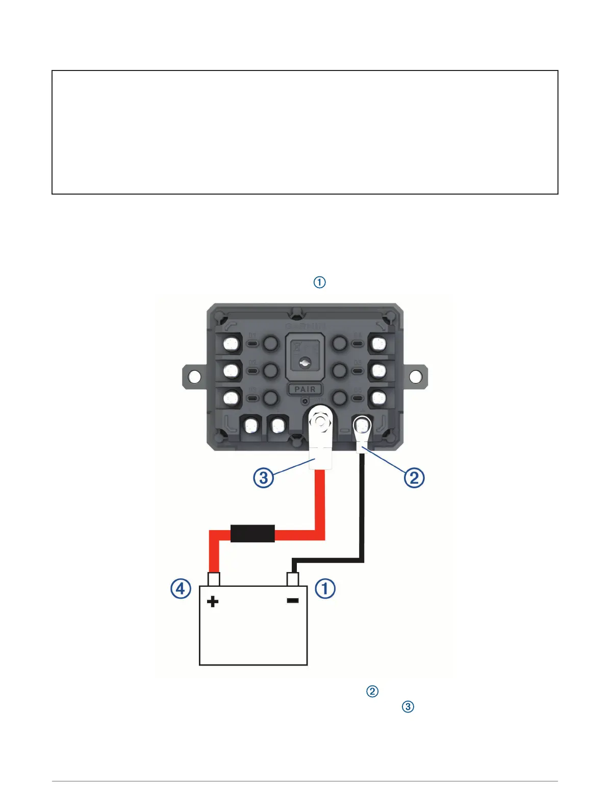 1 Connect the large ring end of the included ground wire to the negative terminal on the vehicle battery.