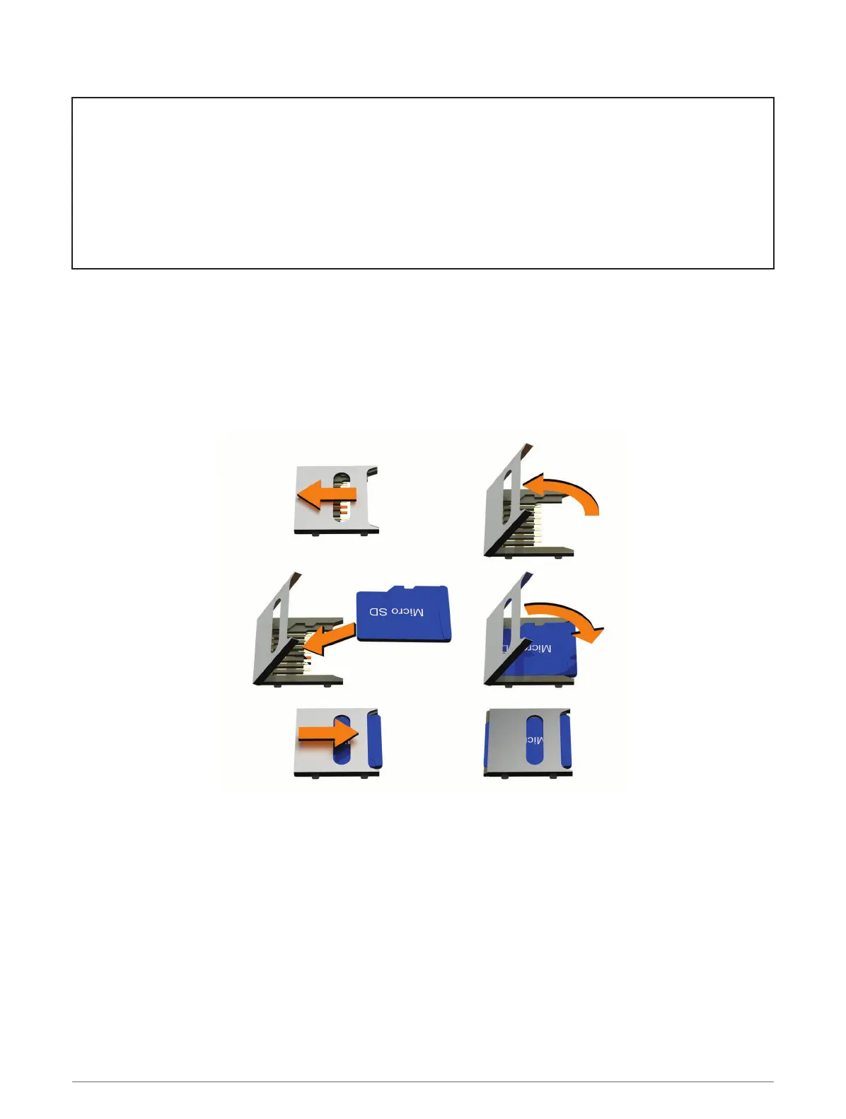 1 Locate the map and data memory card slot on your device (Device Overview, page 2).