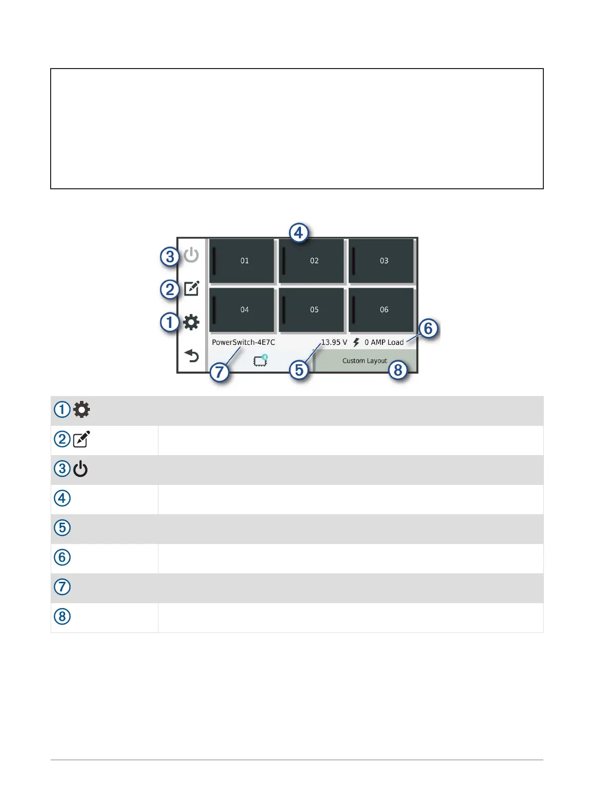 Displays the total amperage of the selected Garmin PowerSwitch device