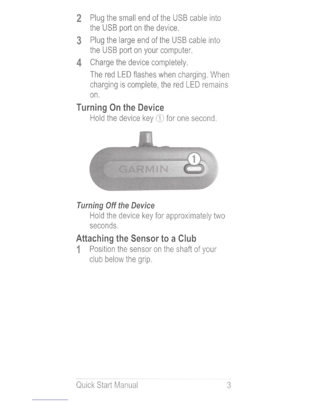 Garmin TruSwing - Turning on the Device; Attaching the Sensor to a Club