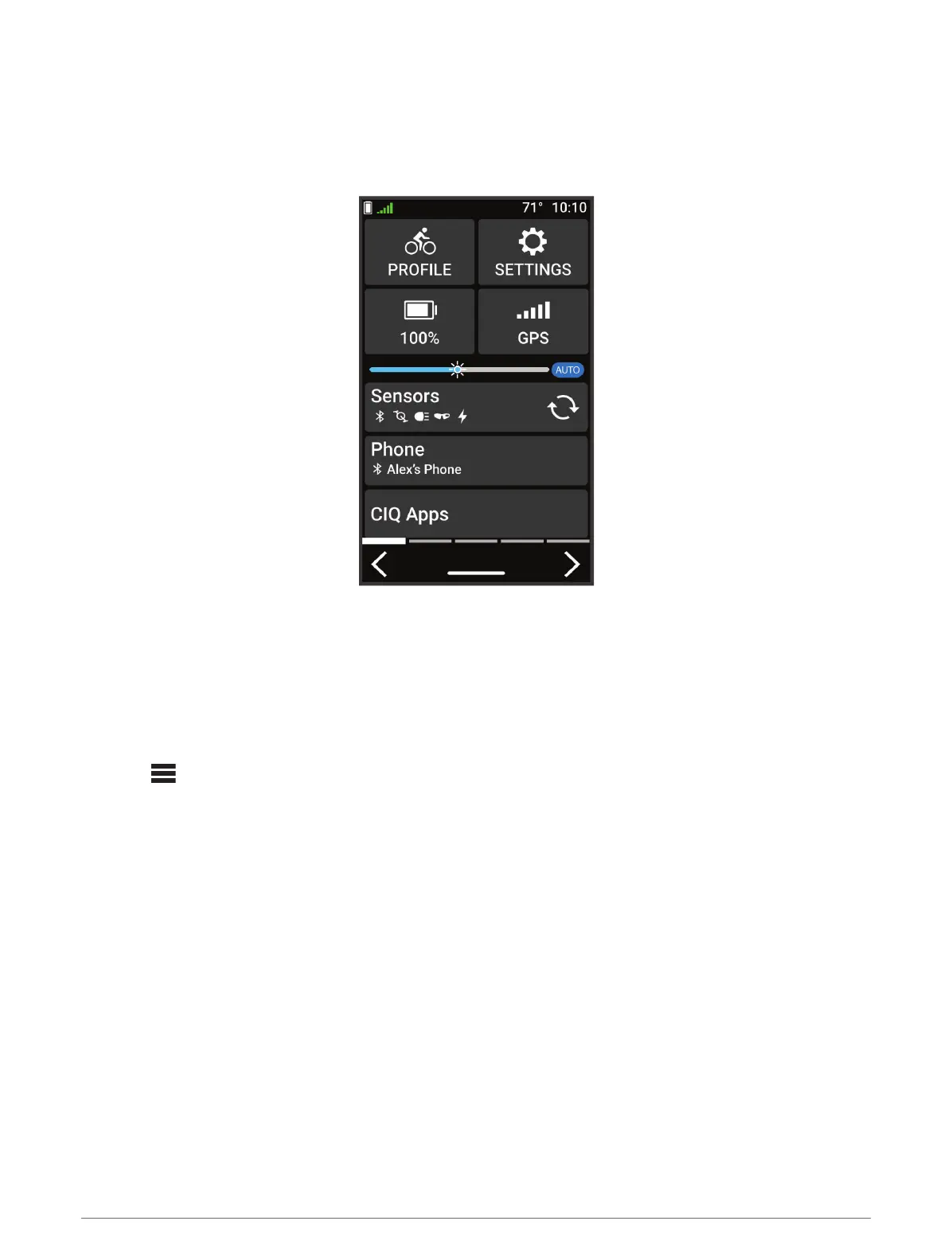 the signal was found or the sensor is connected. You can select any icon to change the settings.