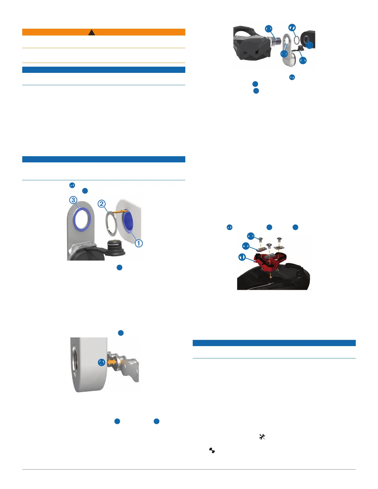 Tre pedalsensoren og eventuelle underlagsskiver ➐ på pedalakselen.
