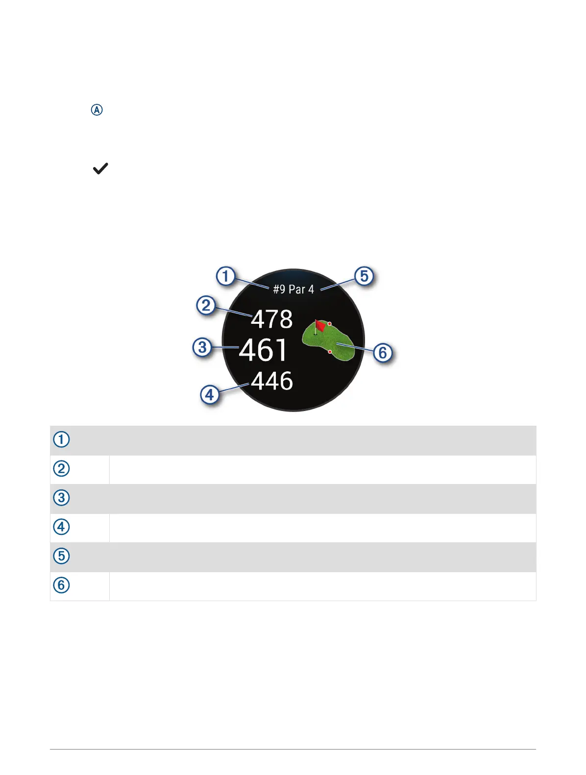 The watch calculates the distance to the front and back of the green, and to the selected pin location (Changing