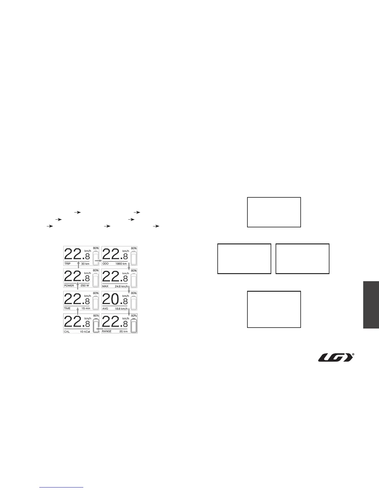 distance) → CALORIES/CAL (KCal) → TIME (riding time) → POWER