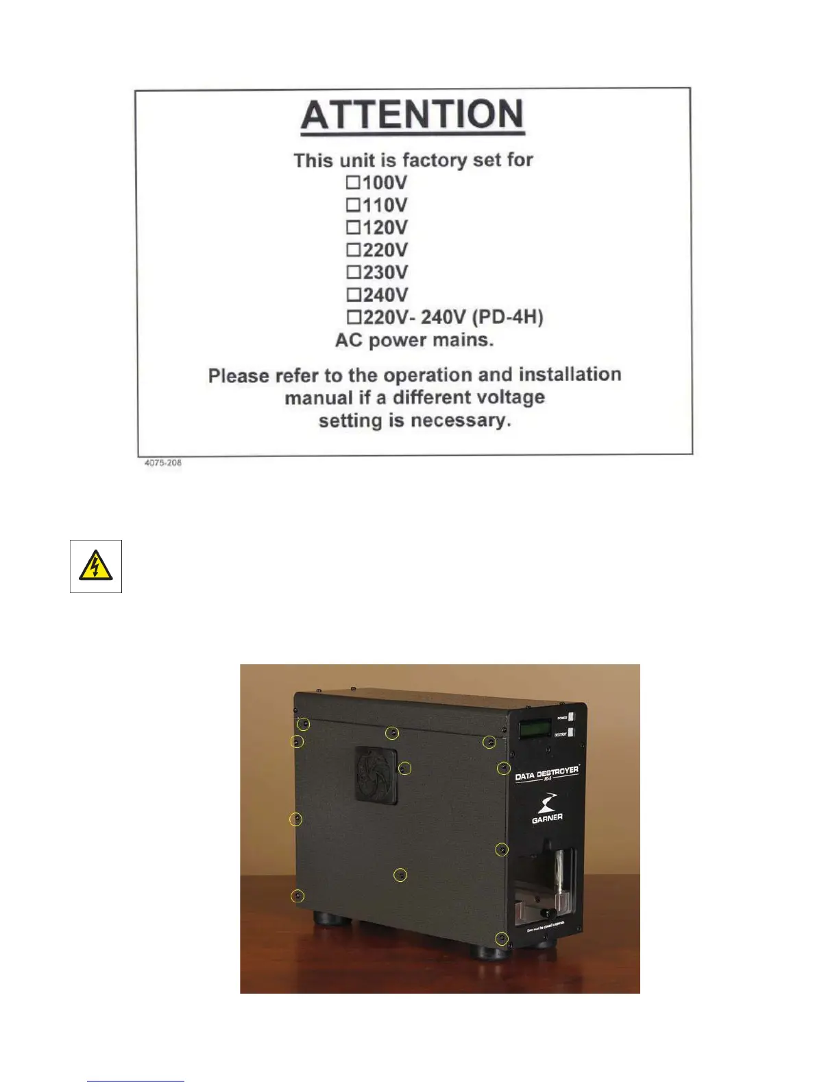 Each PD-5 comes with the above insert identifying the factory set voltage configuration. If the identified voltage