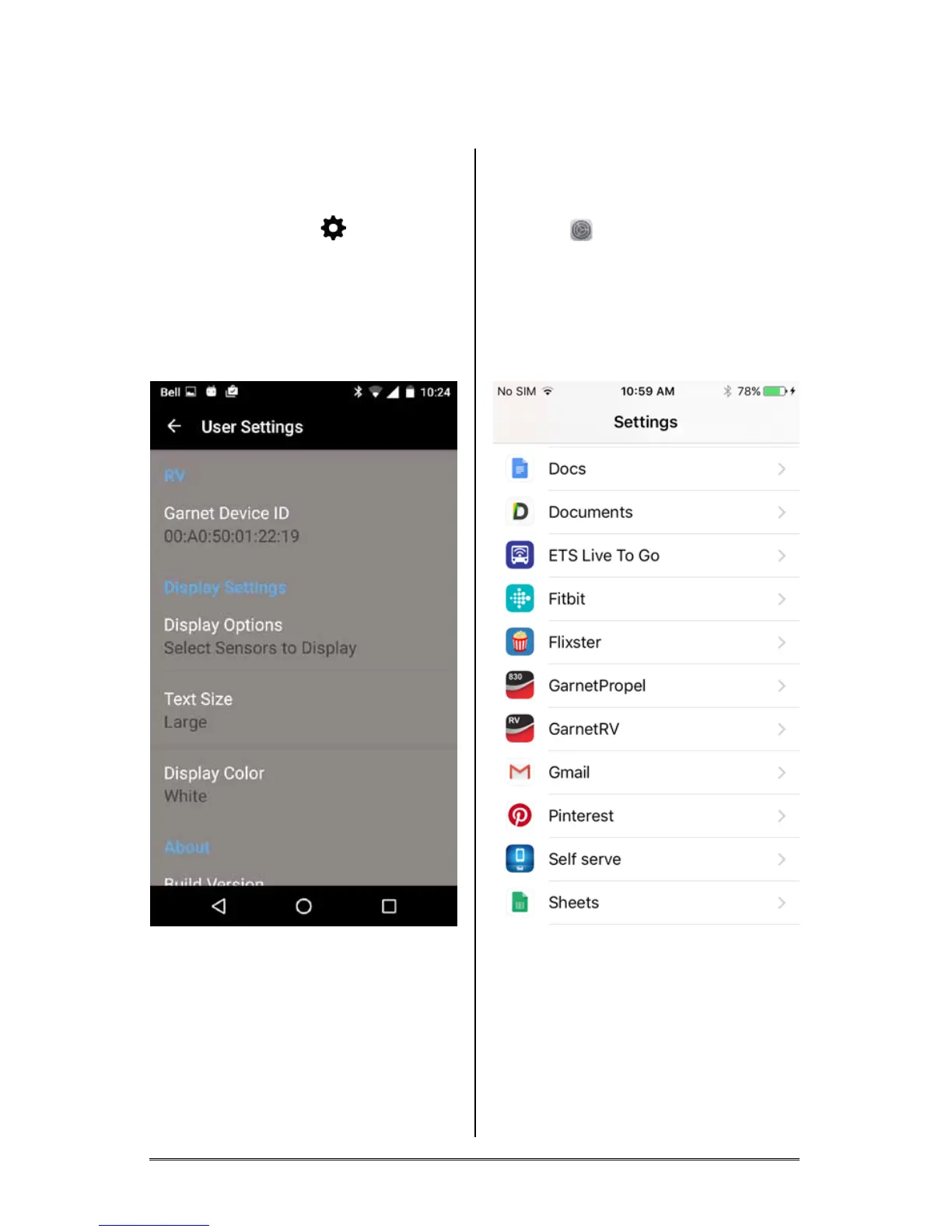 main display of the Garnet RV