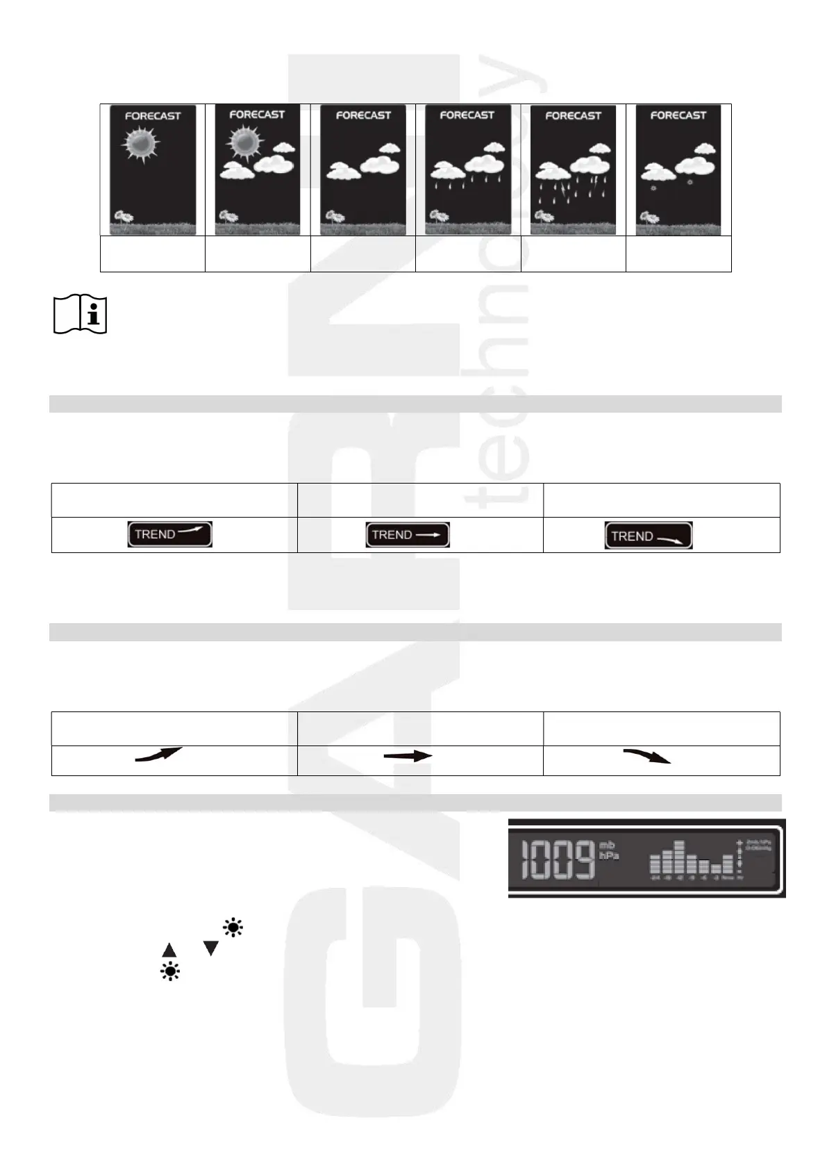 The weather station updates the weather trend arrows and reflects changes that have taken place over the