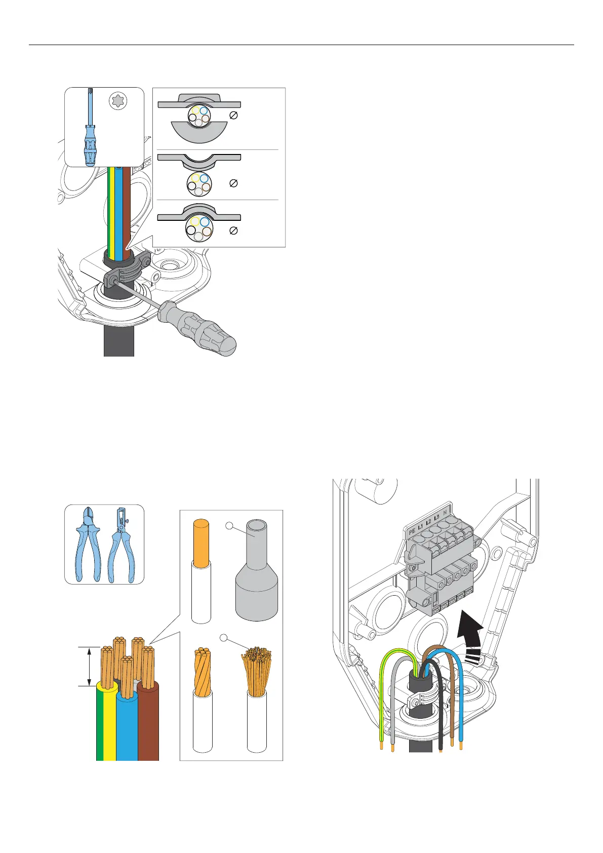 6. Cut and dismantle the wires. Use a wire ferrule (A)