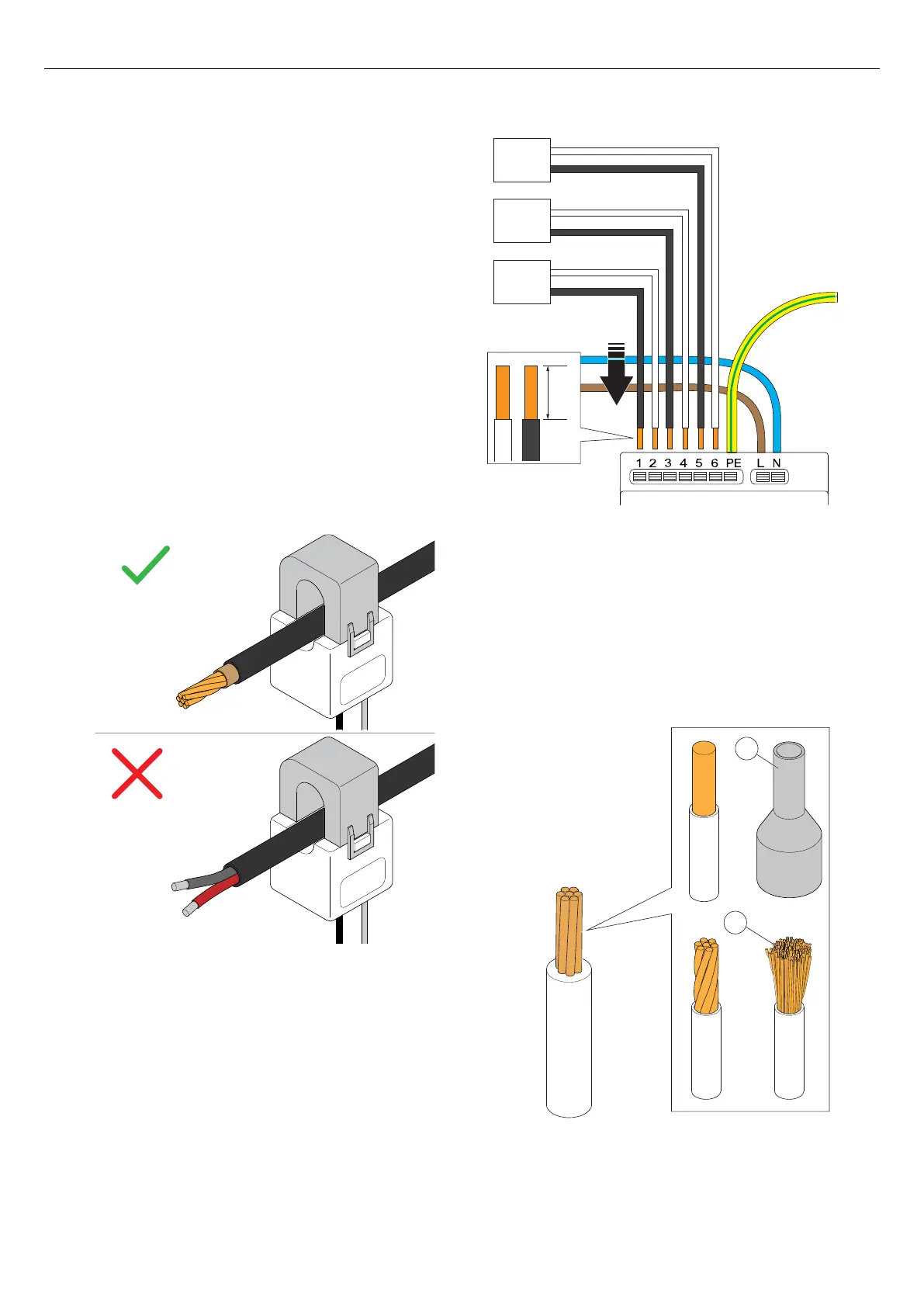 Use a wire ferrule (A) for strained wires (B).
