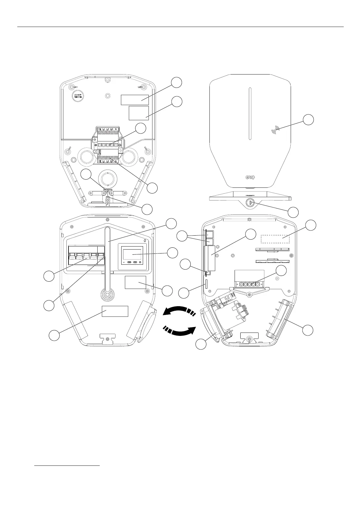 1. The fixed cable variant of the charging unit has the fixed cable placed here.
