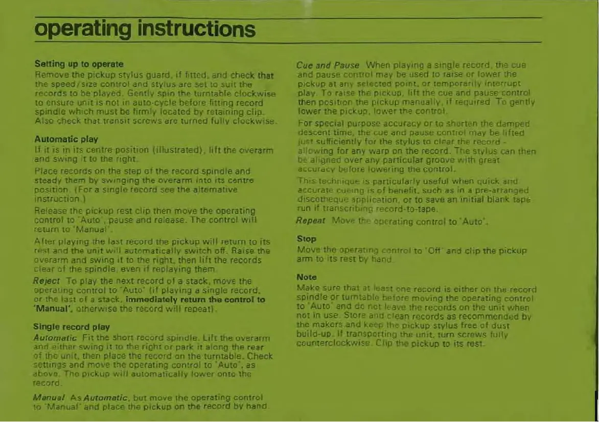 Garrard 440 - Operating Instructions; Setting Up to Operate; Automatic Play; Reject