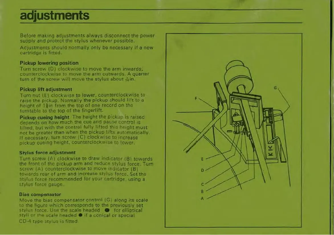 Garrard 440 - Adjustments; Pickup Lowering Position; Pickup Lift Adjustment; Pickup Cueing Height