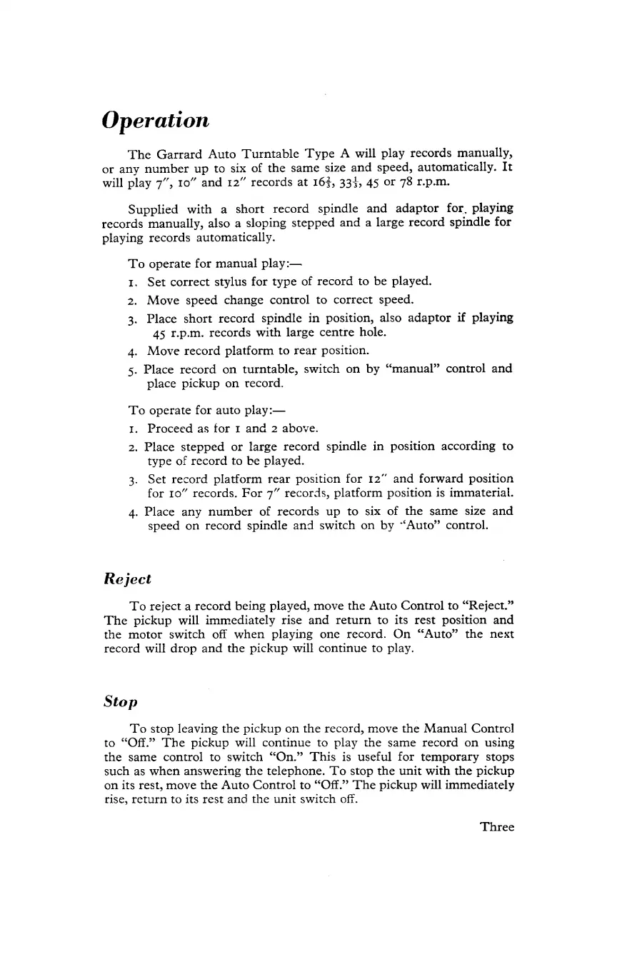 Garrard A - Operation; Reject; Stop
