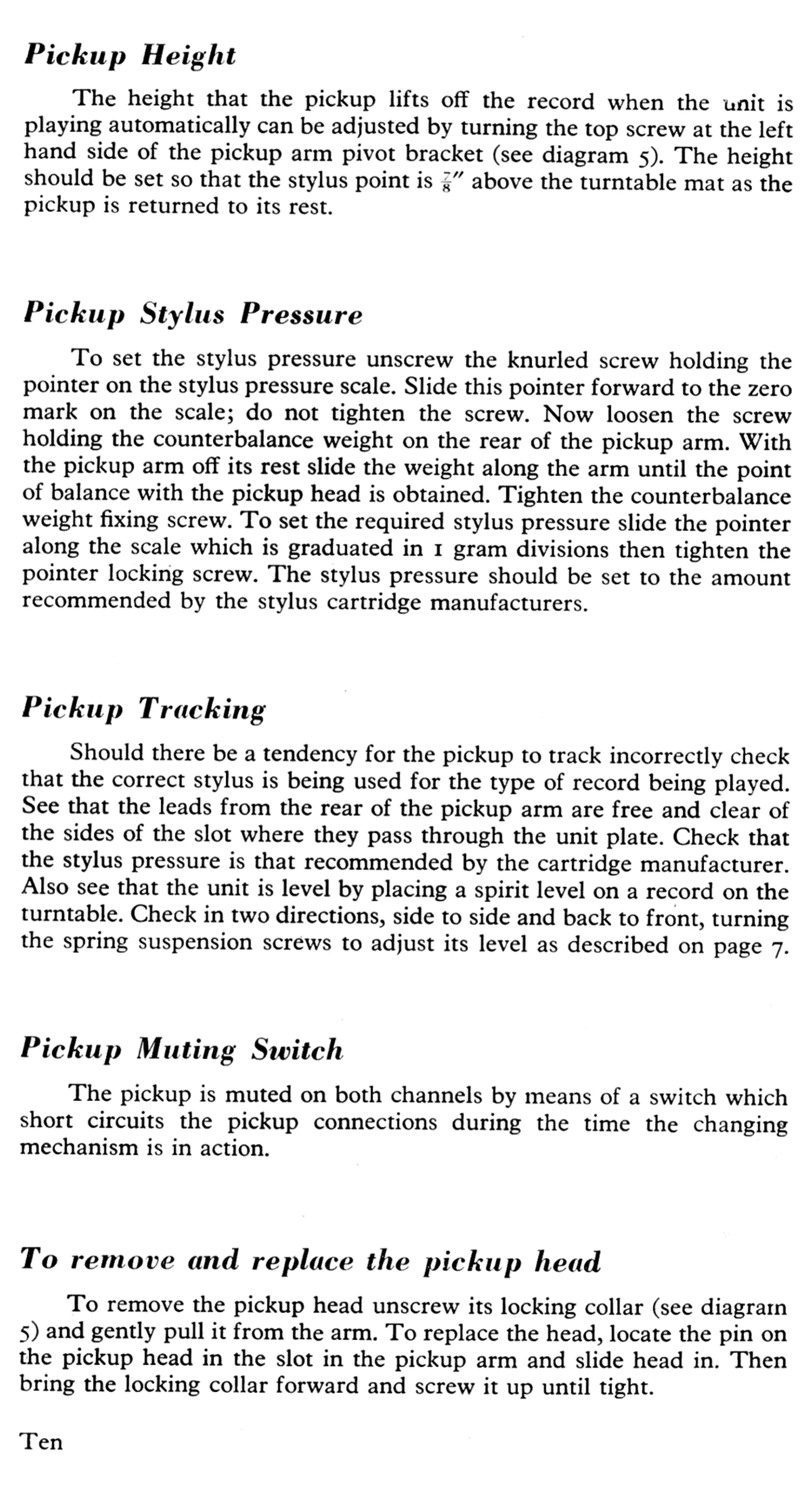 Garrard AT6 - Pickup Calibration and Servicing; Pickup Height Adjustment; Pickup Stylus Pressure Setting; Pickup Tracking Issues