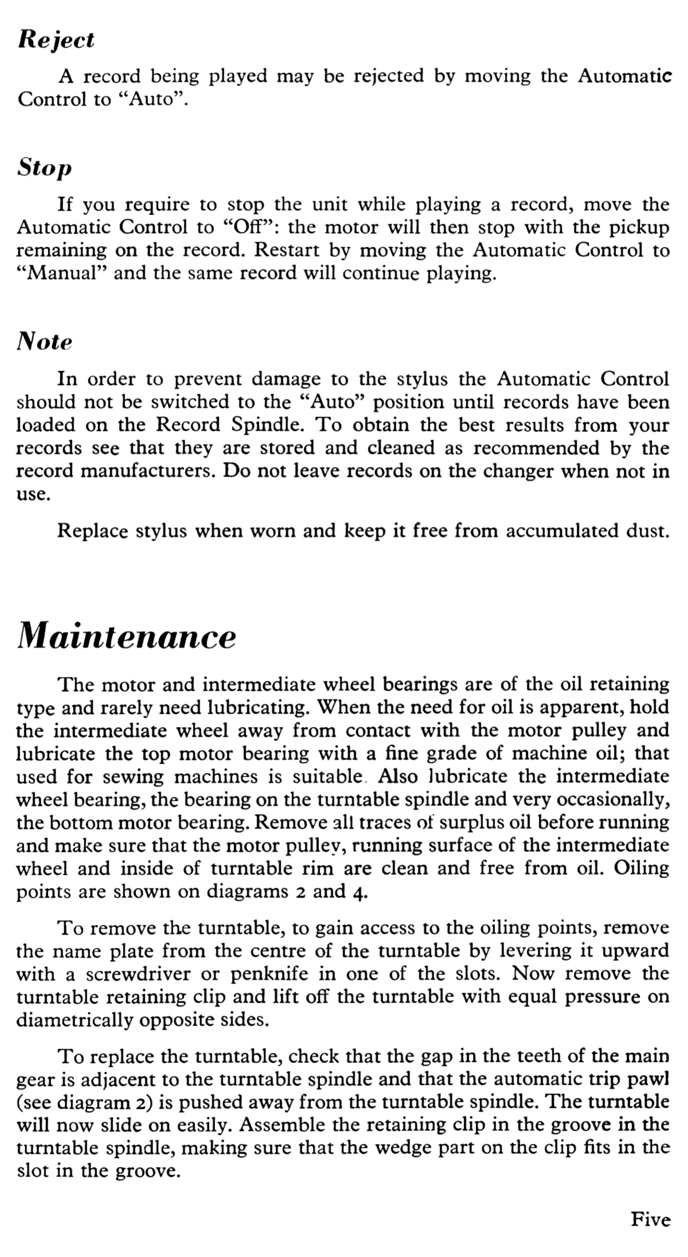 Garrard AT6 - Maintenance Procedures; Lubrication Points; Turntable Removal