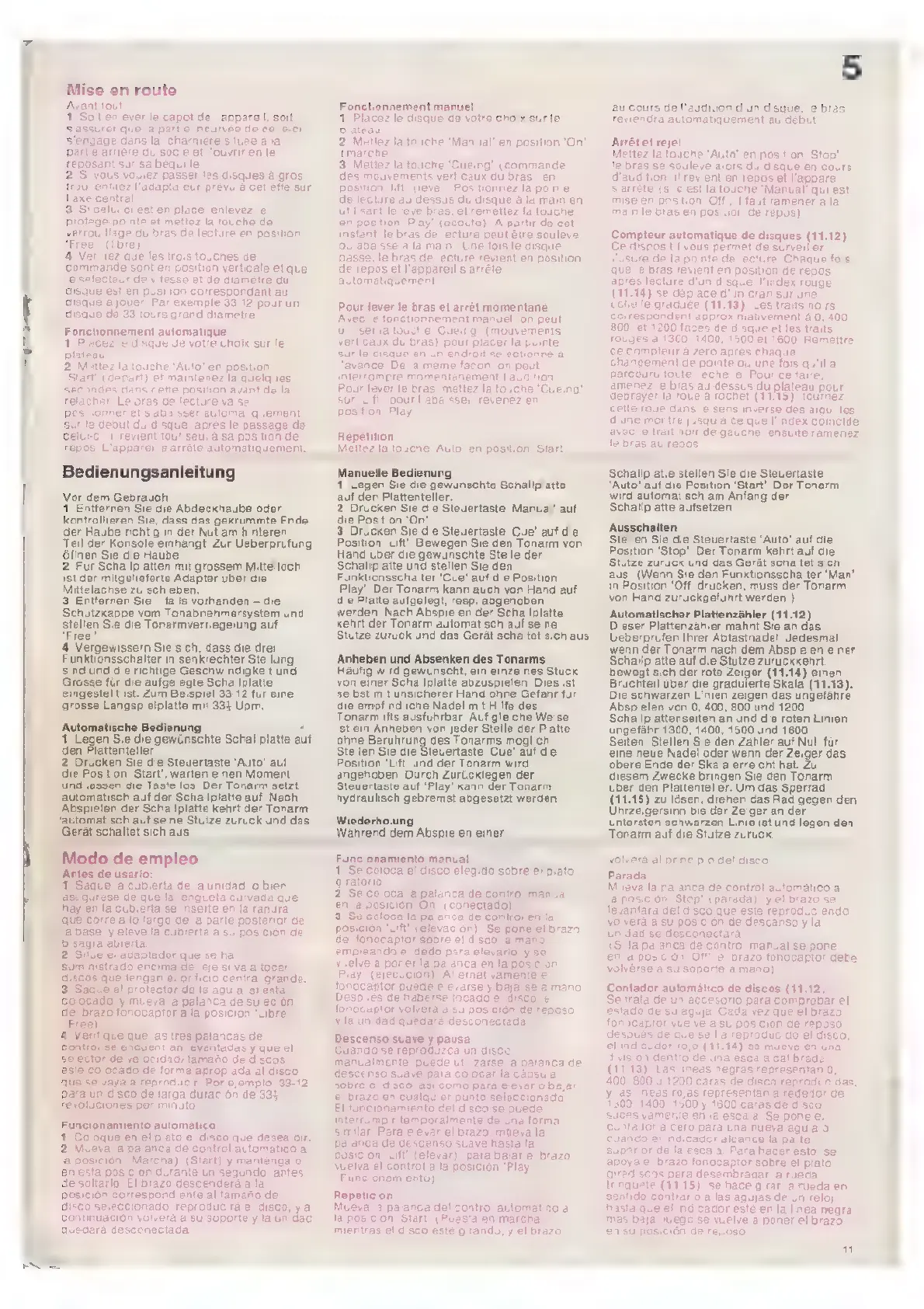 Garrard Module Zero 100SB - Mise en Route; Modo de Empleo