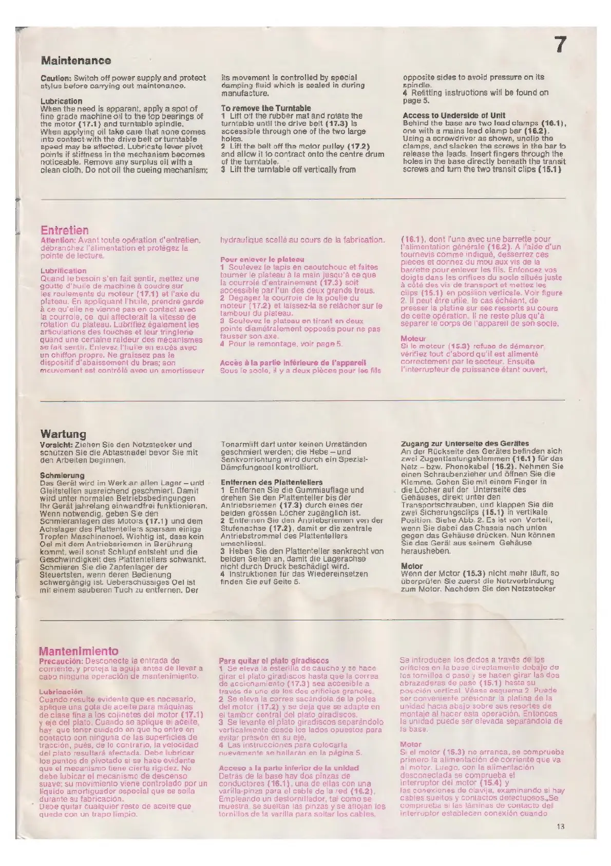 Garrard Module Zero 100SB - Entretien; Wartung