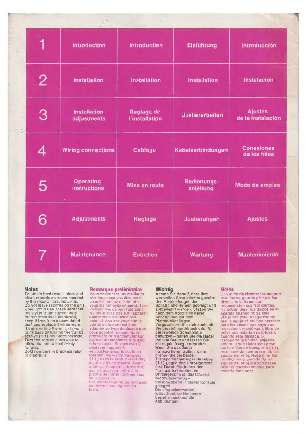 Garrard Module Zero 100SB - Installation; Maintenance; Mantenimiento