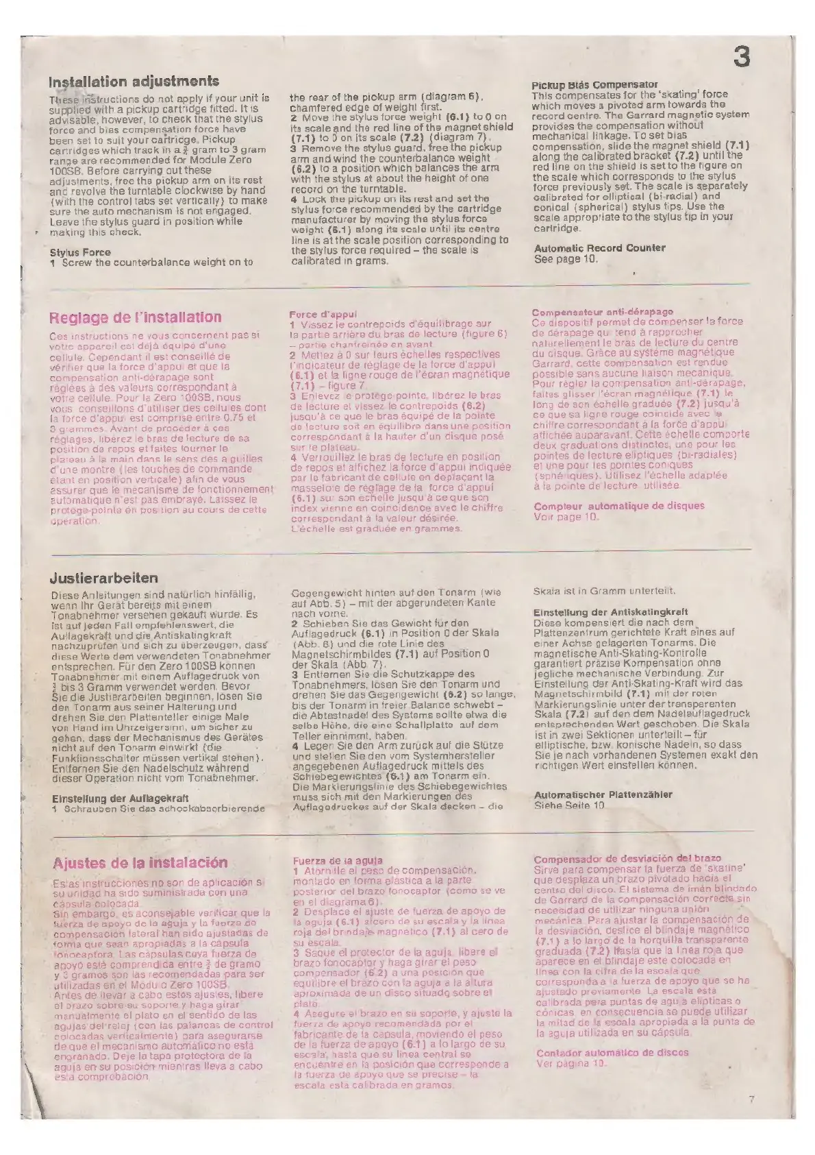 Garrard Module Zero 100SB - Installation Adjustments