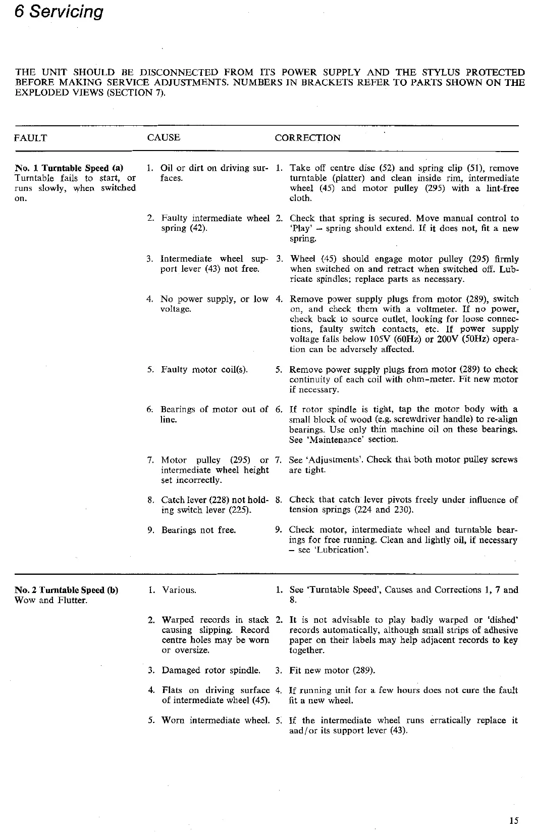 Garrard ZERO 100 - 6 Servicing; Turntable Speed and Flutter Troubleshooting