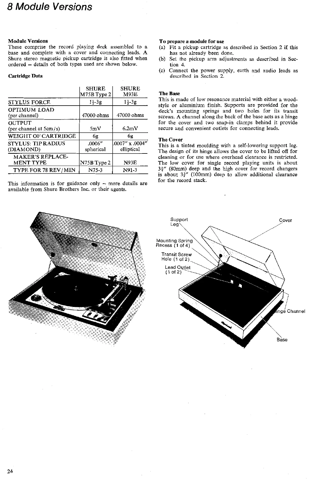 Garrard ZERO 100C - Module Versions; Cartridge Data; To Prepare a Module for Use; The Base