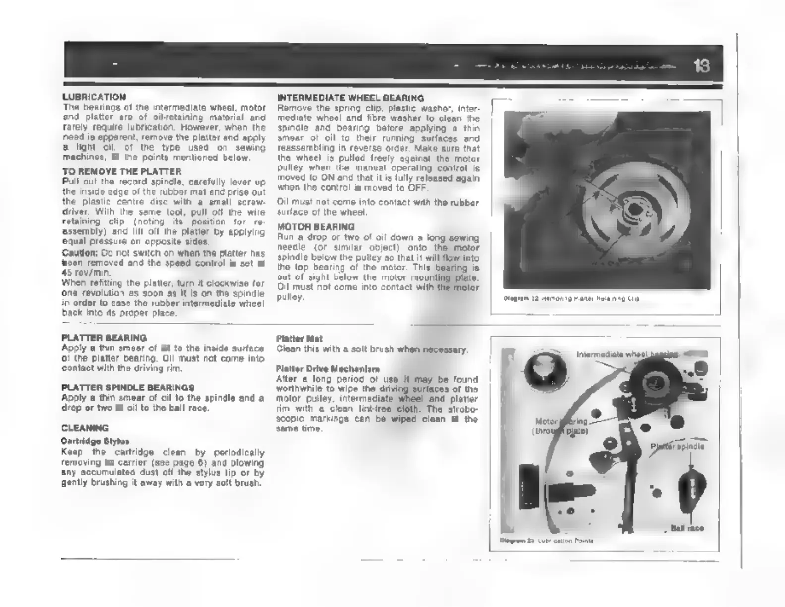Garrard ZERO 100C - Lubrication and Maintenance; Bearing Lubrication Points