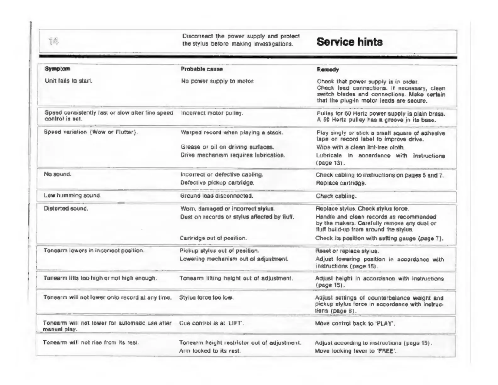 Garrard ZERO 100C - Service Hints and Troubleshooting; Common Issues and Remedies