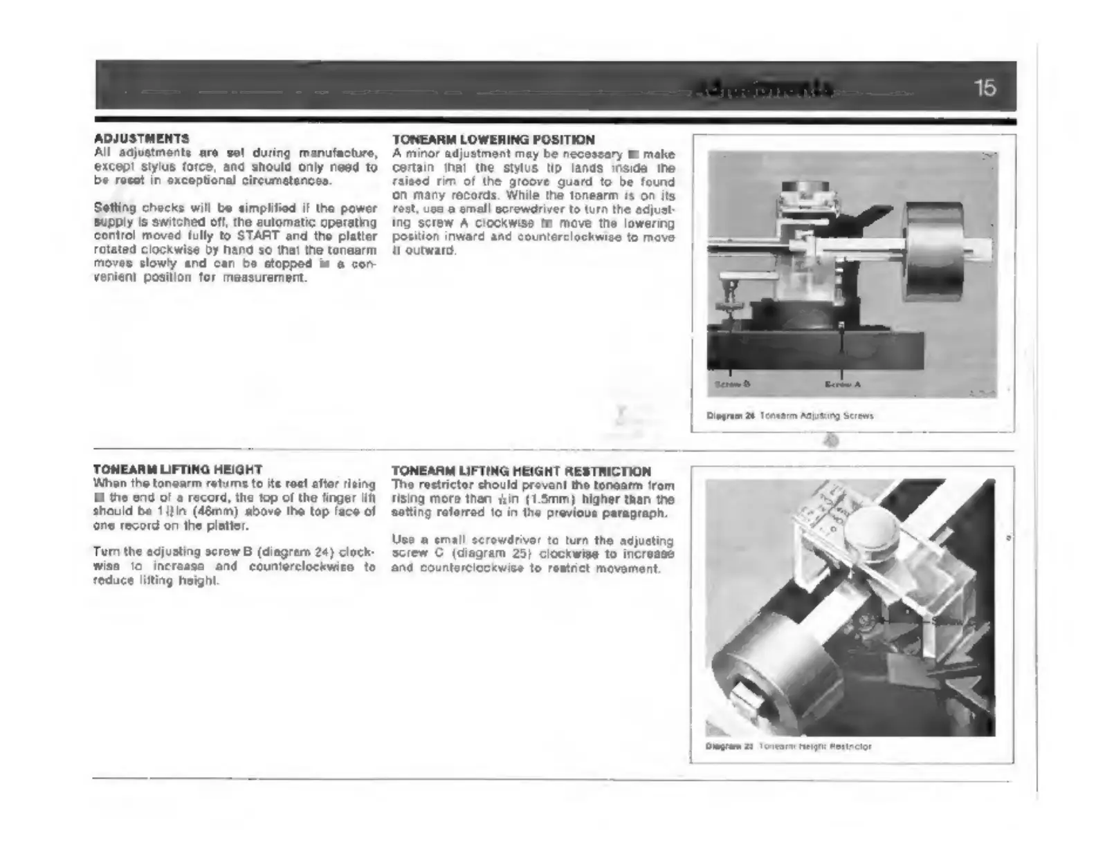 Garrard ZERO 100C - Unit Adjustments; Tonearm Lowering Position; Tonearm Lifting Height; Lifting Height Restriction