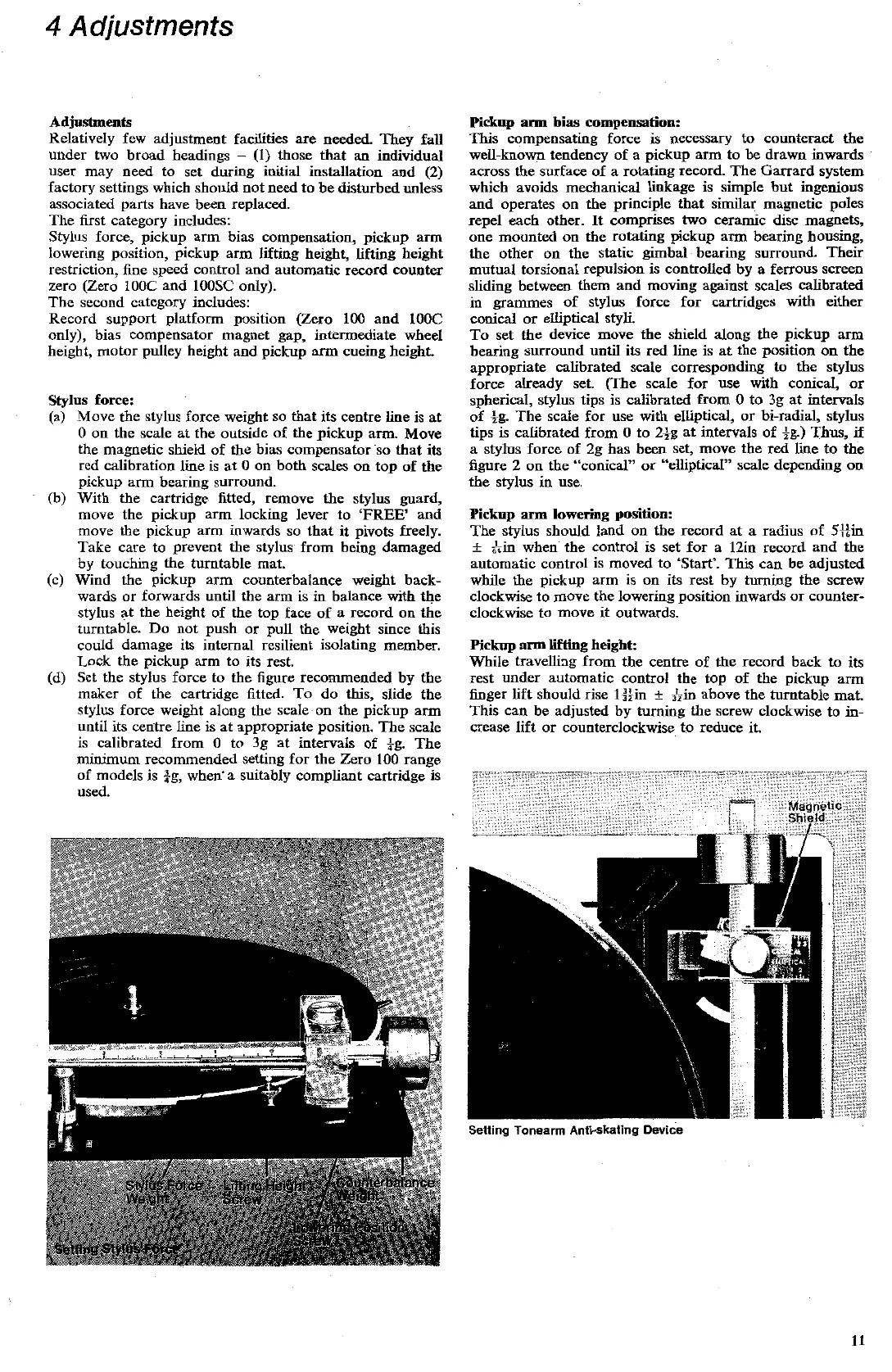 Garrard ZERO 100SC - Adjustments and Calibration; Stylus Force and Bias Compensation