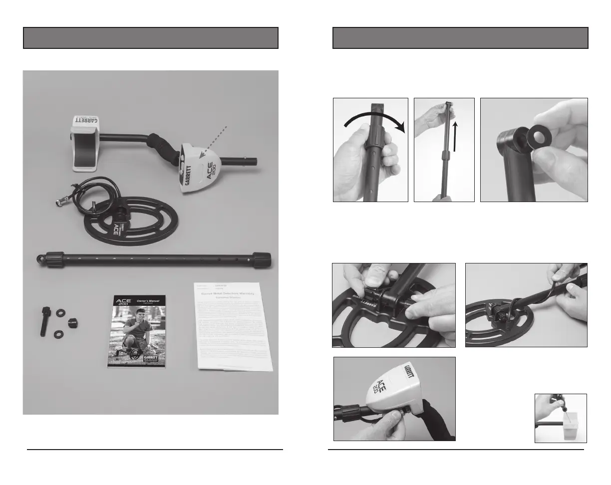 washers, connect searchcoil to stem as shown, and hand-