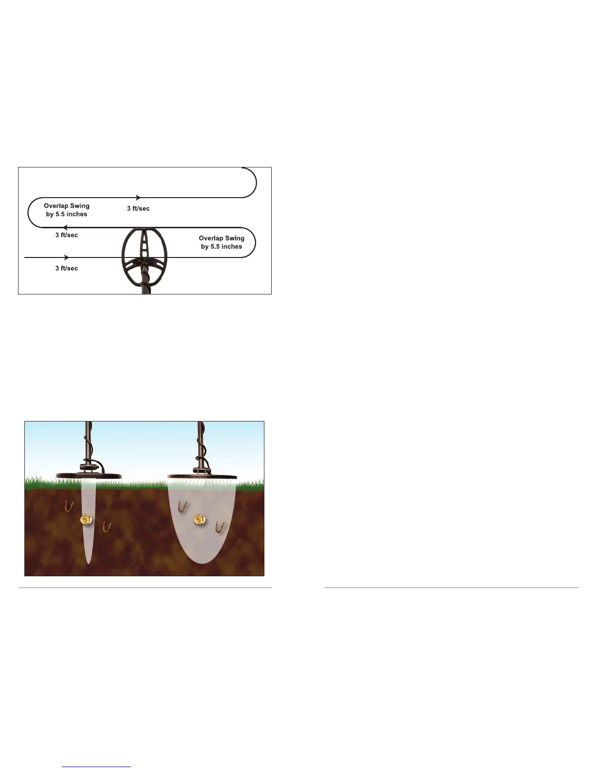 In order to fully search an area, overlap the swings of your searchcoil by half the