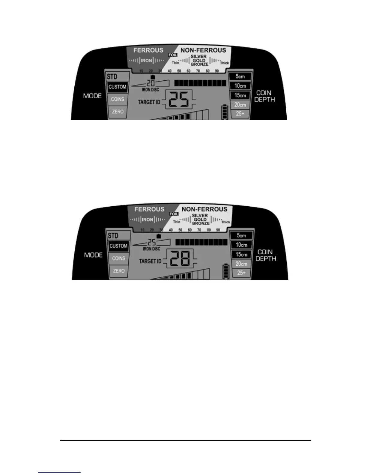 discrimination level to 25 using the IRON DISC (+) pushbutton.