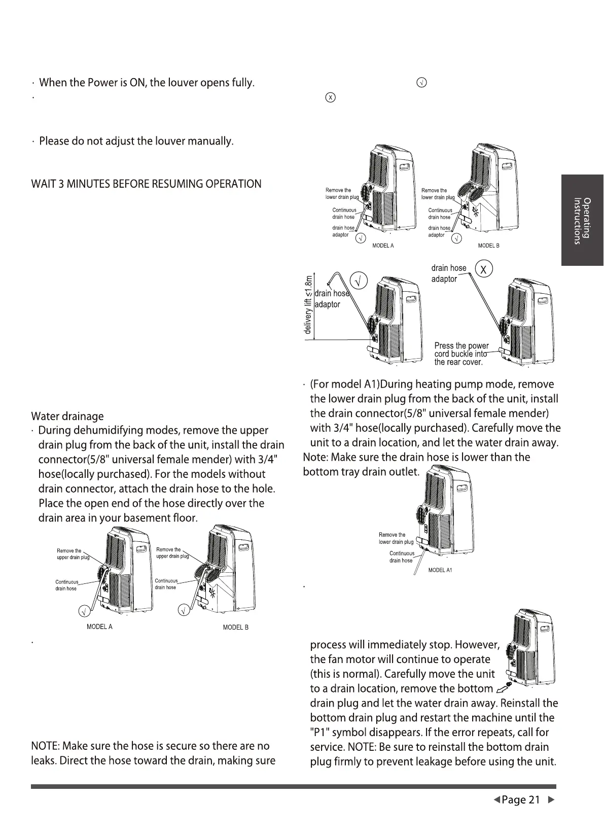 hose(locally purchased). For models without drain