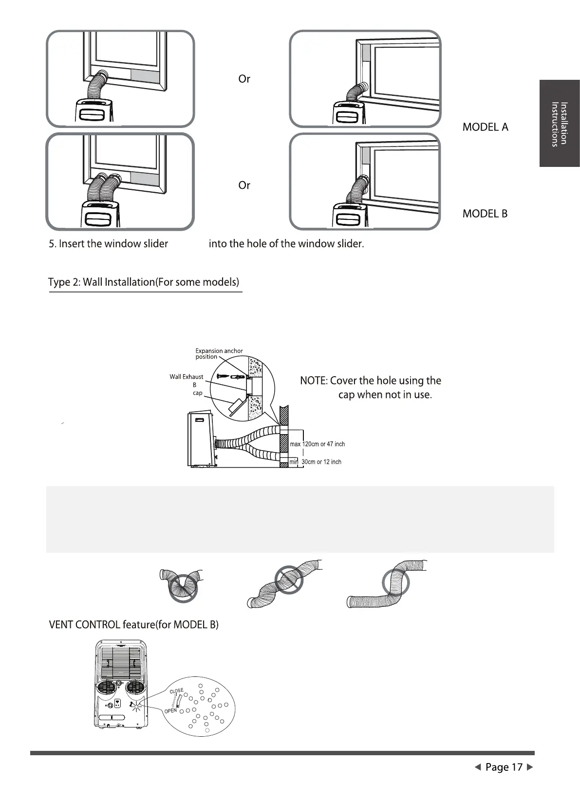 3. Connect the exhaust hose assembly (with wall exhaust adapter A) to the Wall wall exhaust adapter B.