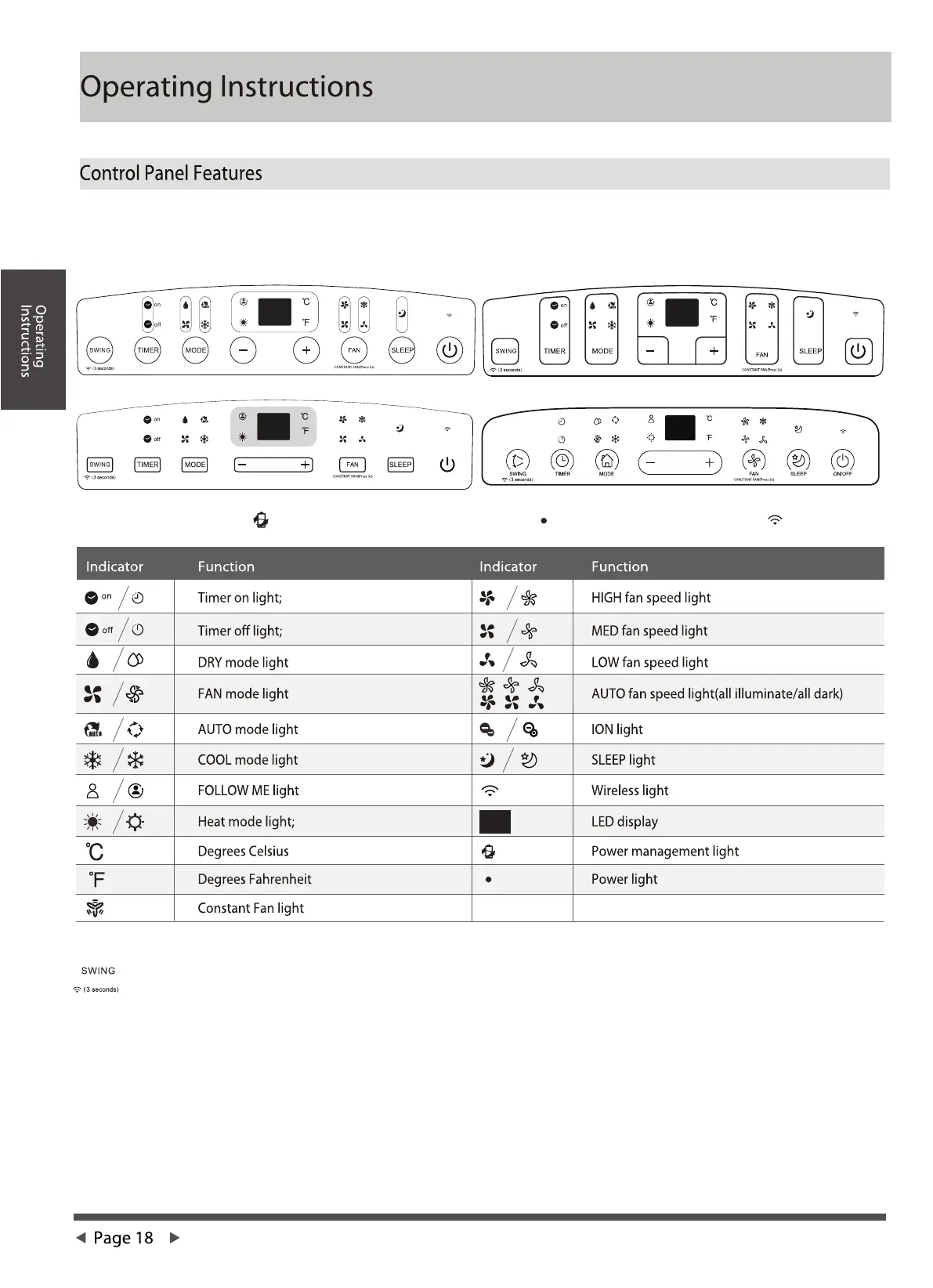 NOTE: On some models, is used instead of °F. On some models, (power light) is used instead of (WIRELESS light).