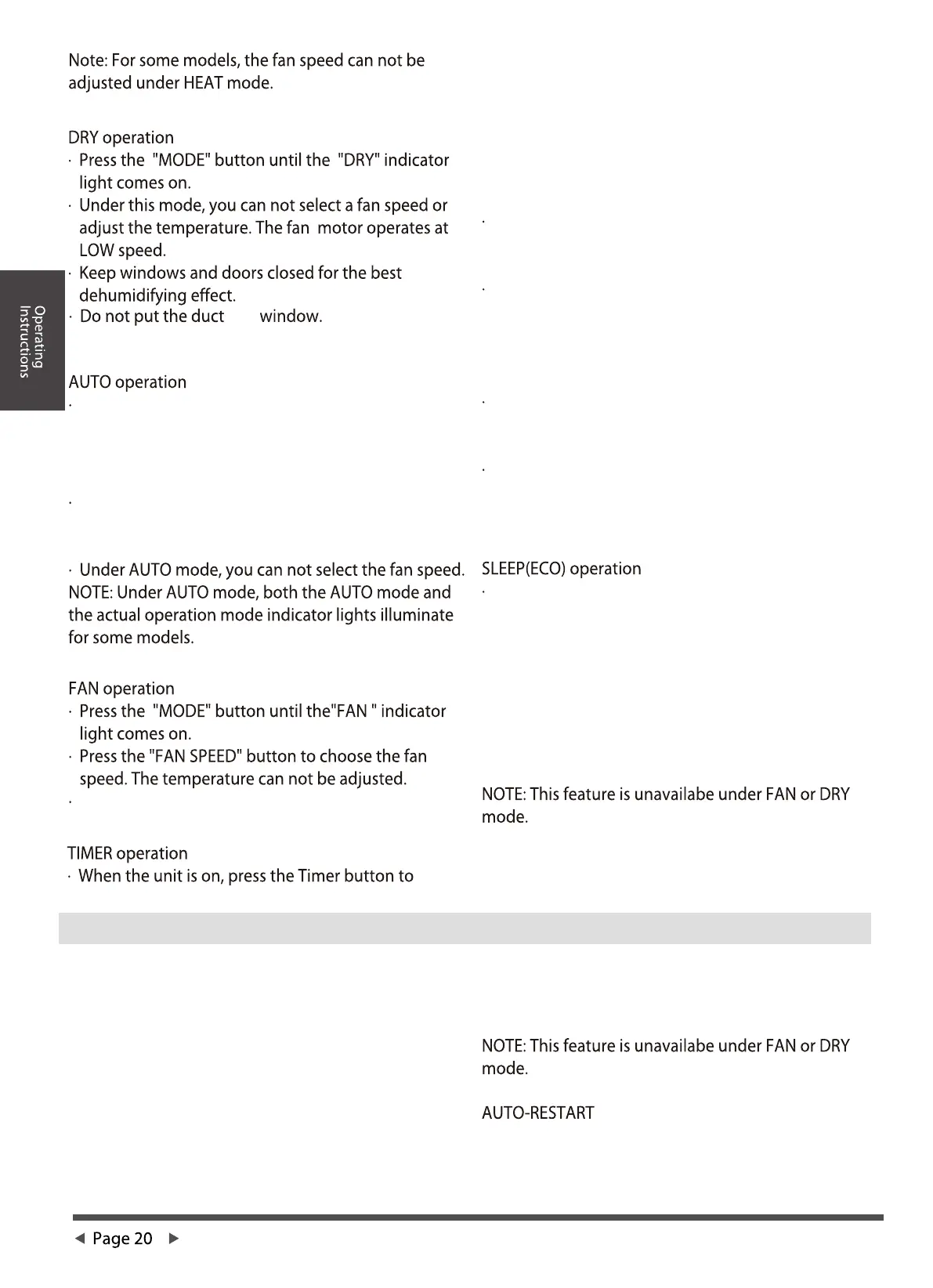 ends the Sleep/Eco mode and the unit will continue