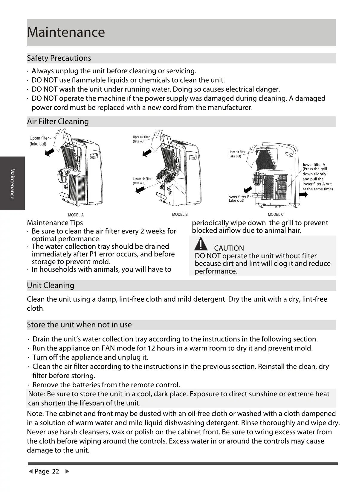 Garrison 311438115 - Maintenance; Safety, Cleaning, and Storage