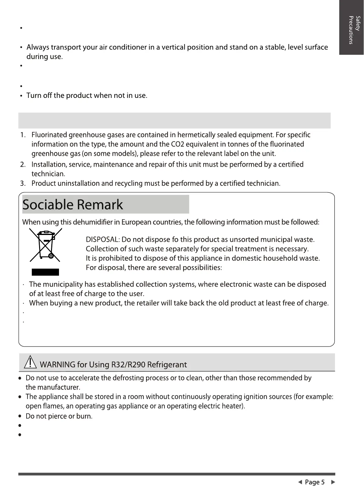 Note about Fluorinated Gases (not applicable to the unit using R290 refrigerant)