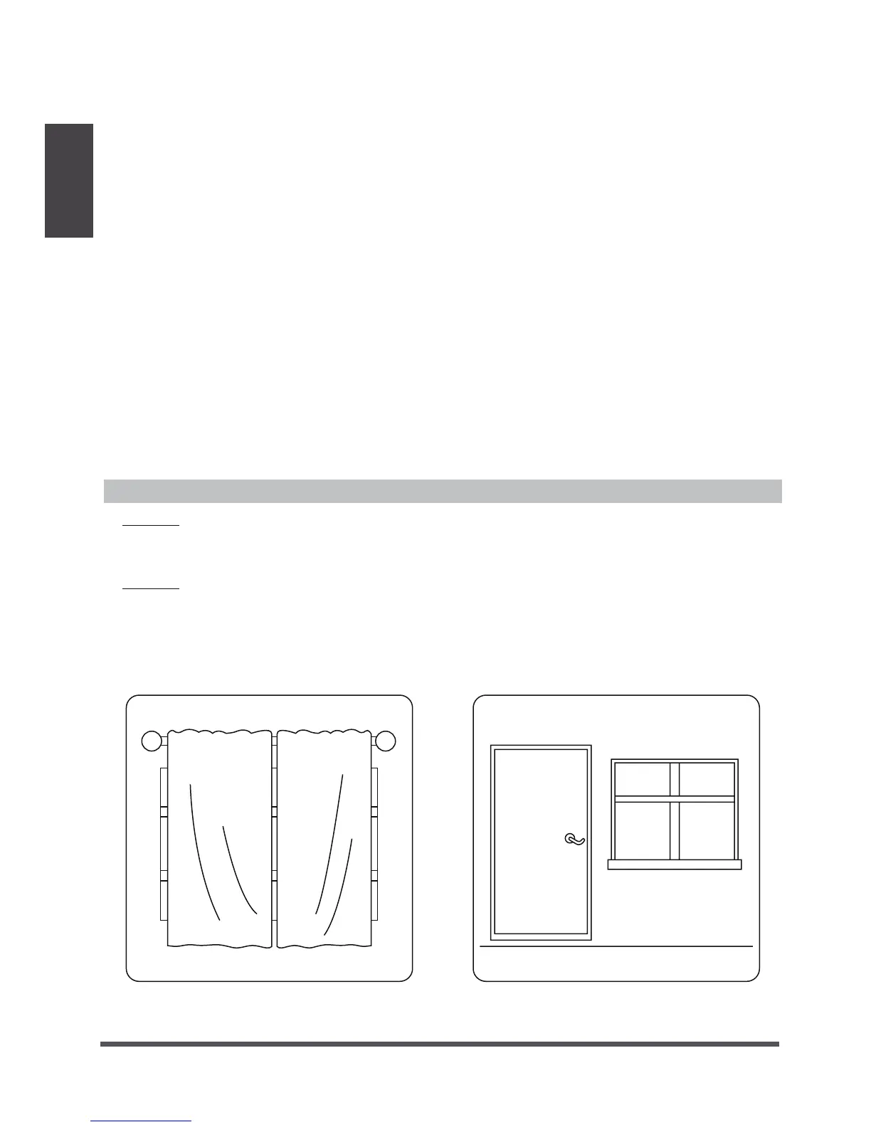 • Doors and windows should be kept closed to keep cool or warm air in the room.