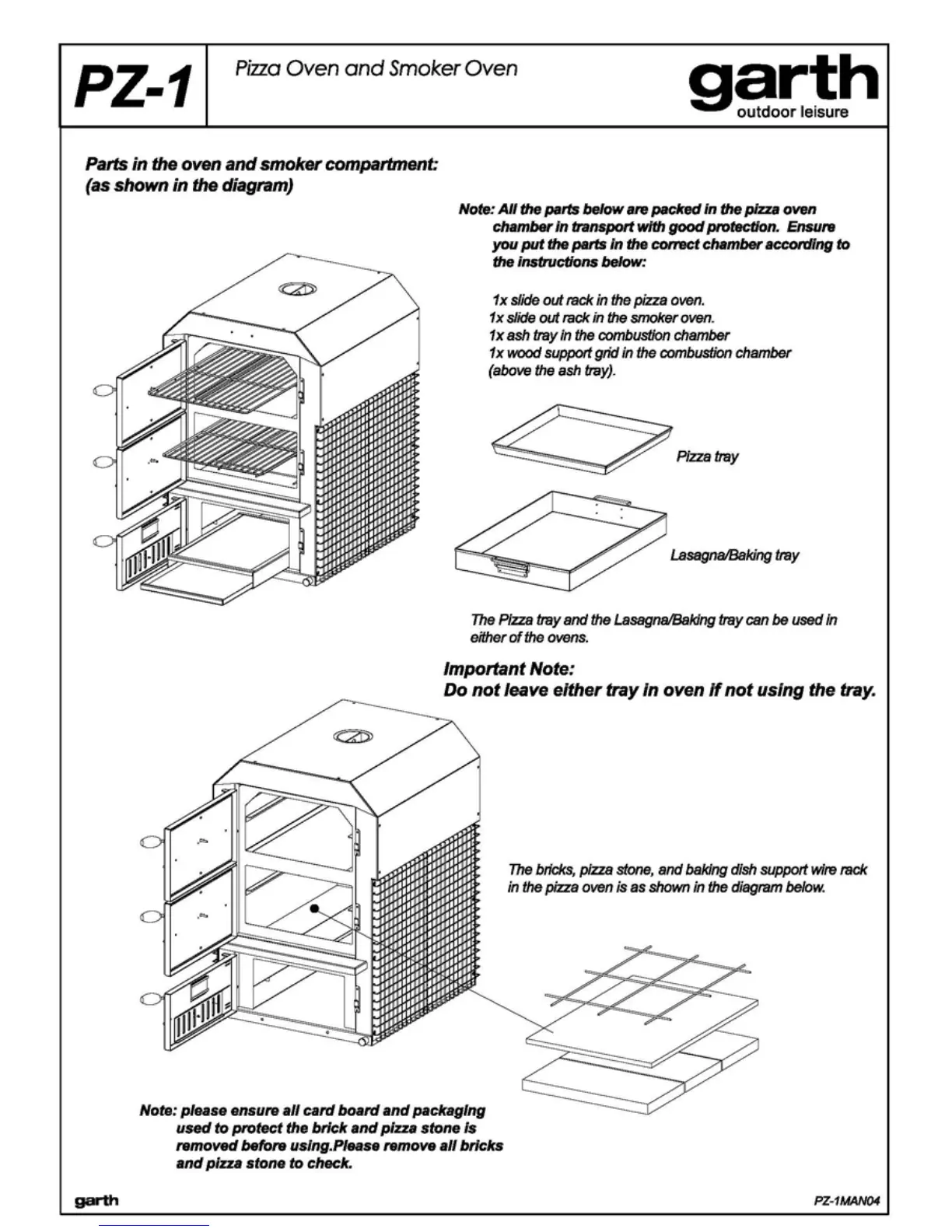 Garth PZ-1 - Parts in the oven and smoker compartment; Component Identification