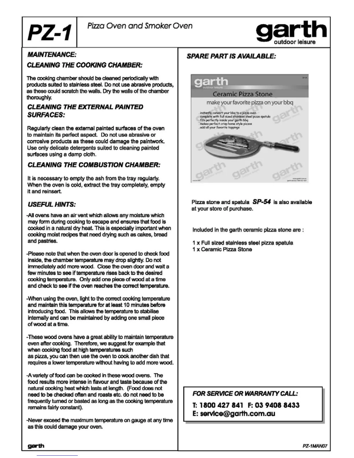 Garth PZ-1 - MAINTENANCE; Cleaning Procedures; USEFUL HINTS; Operational Tips