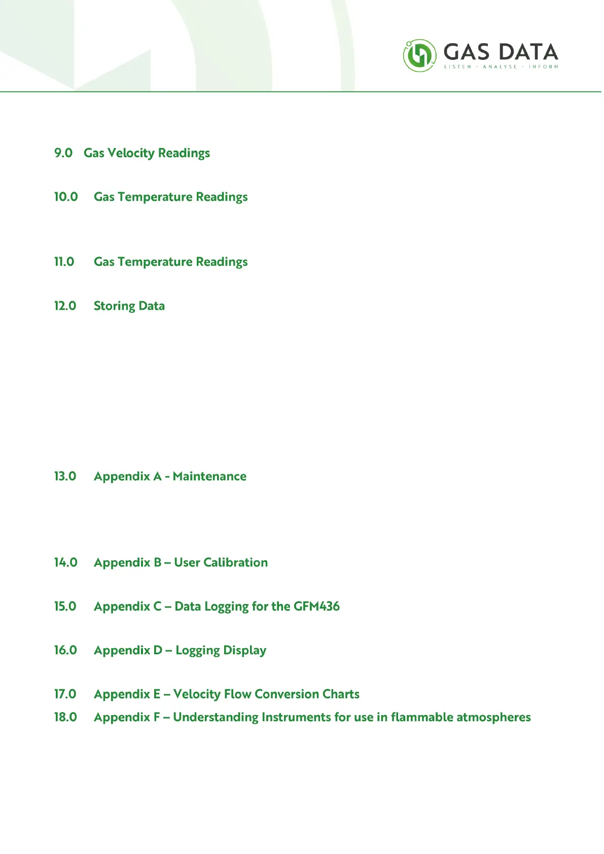 9.1 Gas velocity Measurement with optional vane anemometer ....................................................... 32