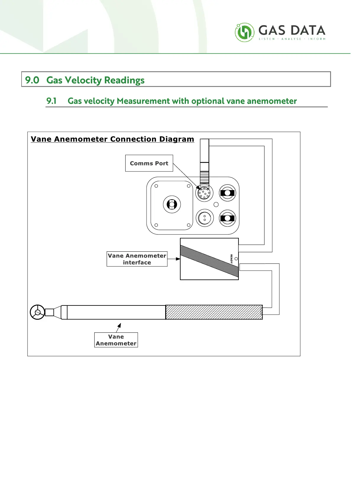 Connect the vane anemometer to the Comms port at the top of the instrument.