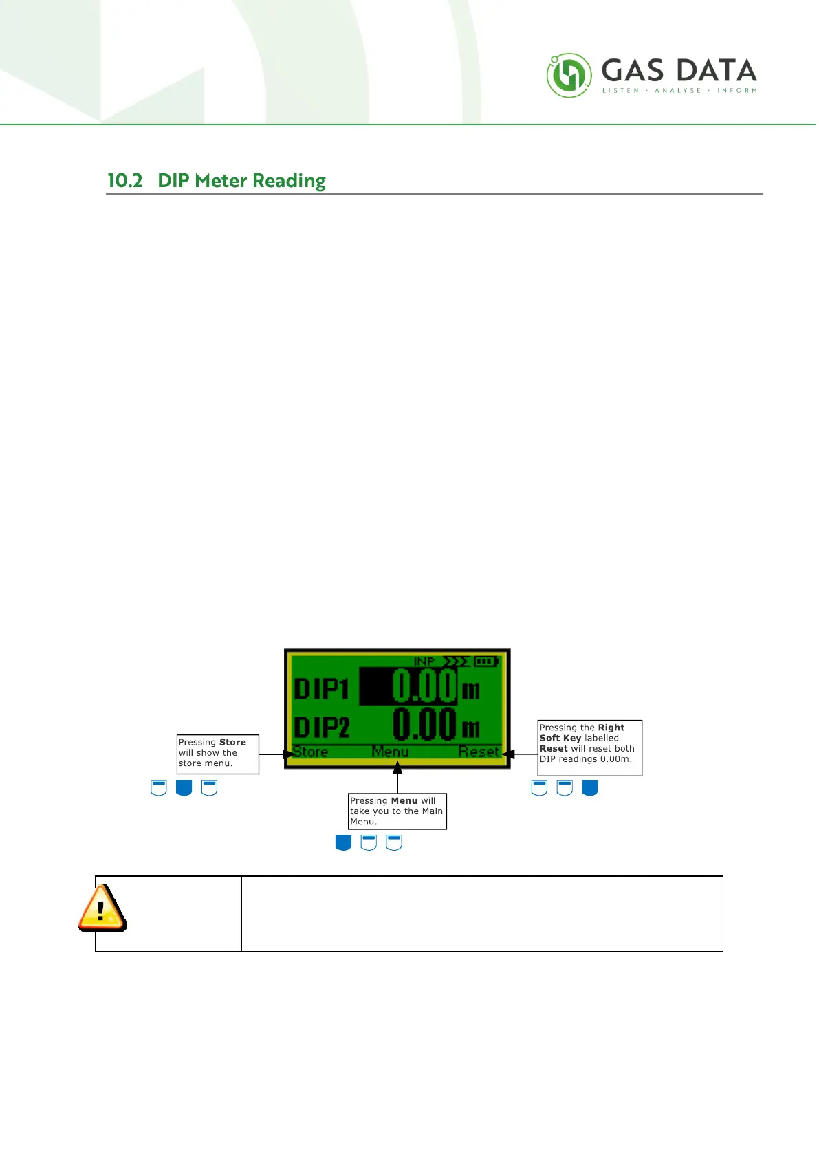 Pressing the Right Soft Key (Reset), will reset both DIP readings to 0.00m.