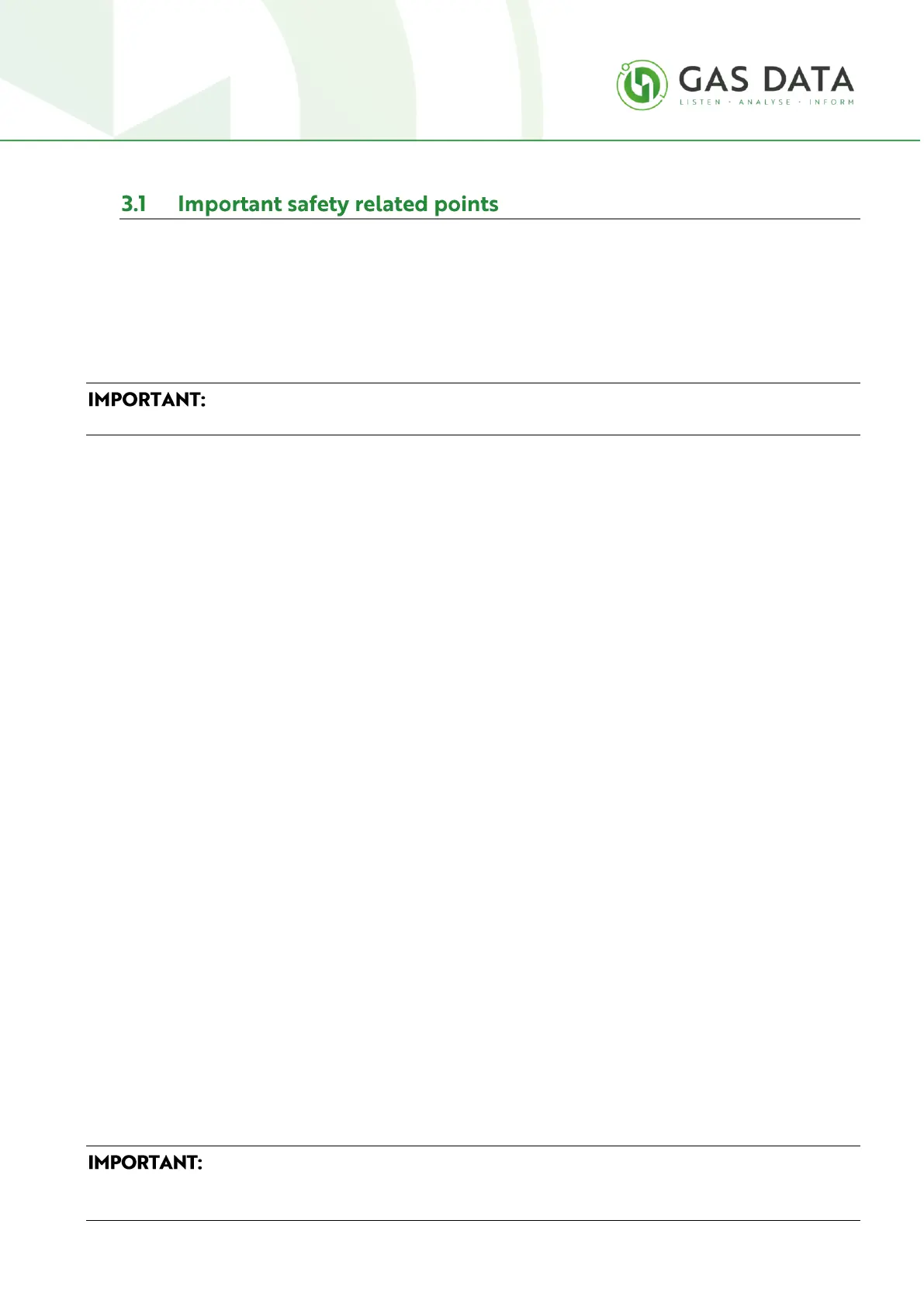 • Ensure correct filter is used on the Gas In port – If any doubt please contact Gas Data