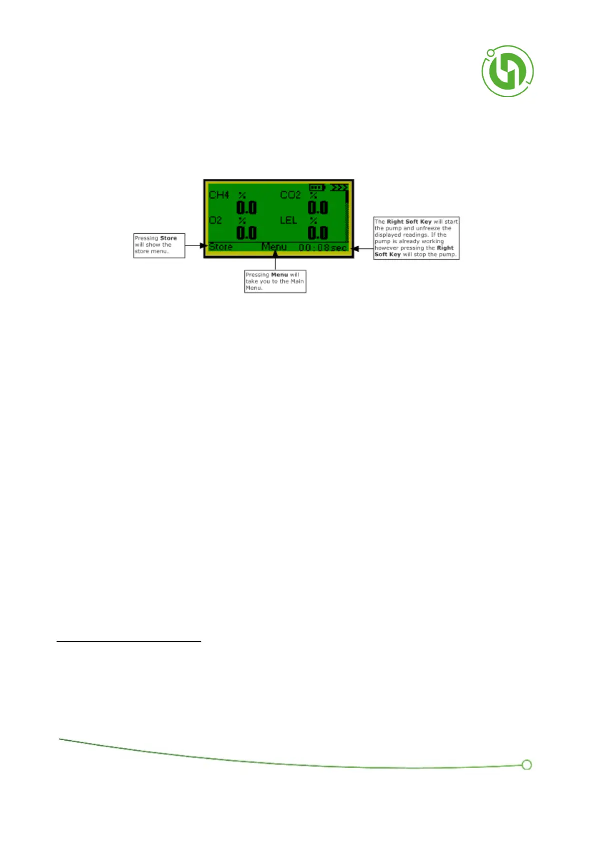 Pressing the Left Key will navigate to the first Gas Display screen and pressing the Right Key will navigate to the