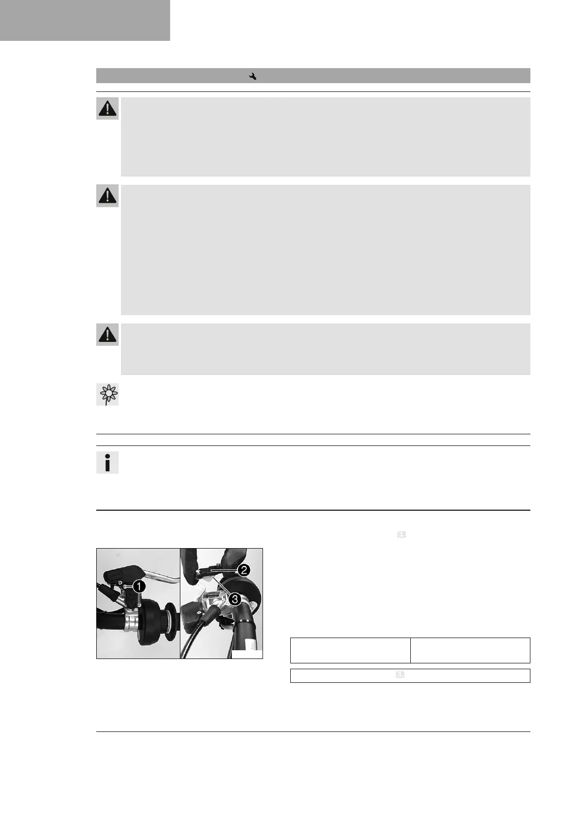 – Move the brake fluid reservoir mounted on the handlebar to a hori-