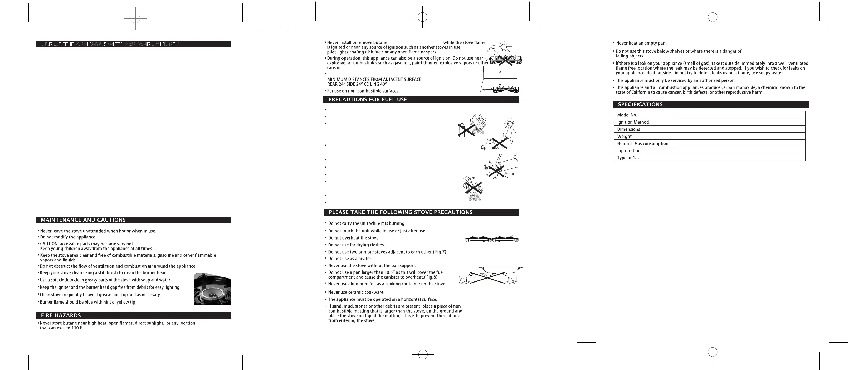 7. Make sure stove is placed on a at, sturdy surface before igniting.