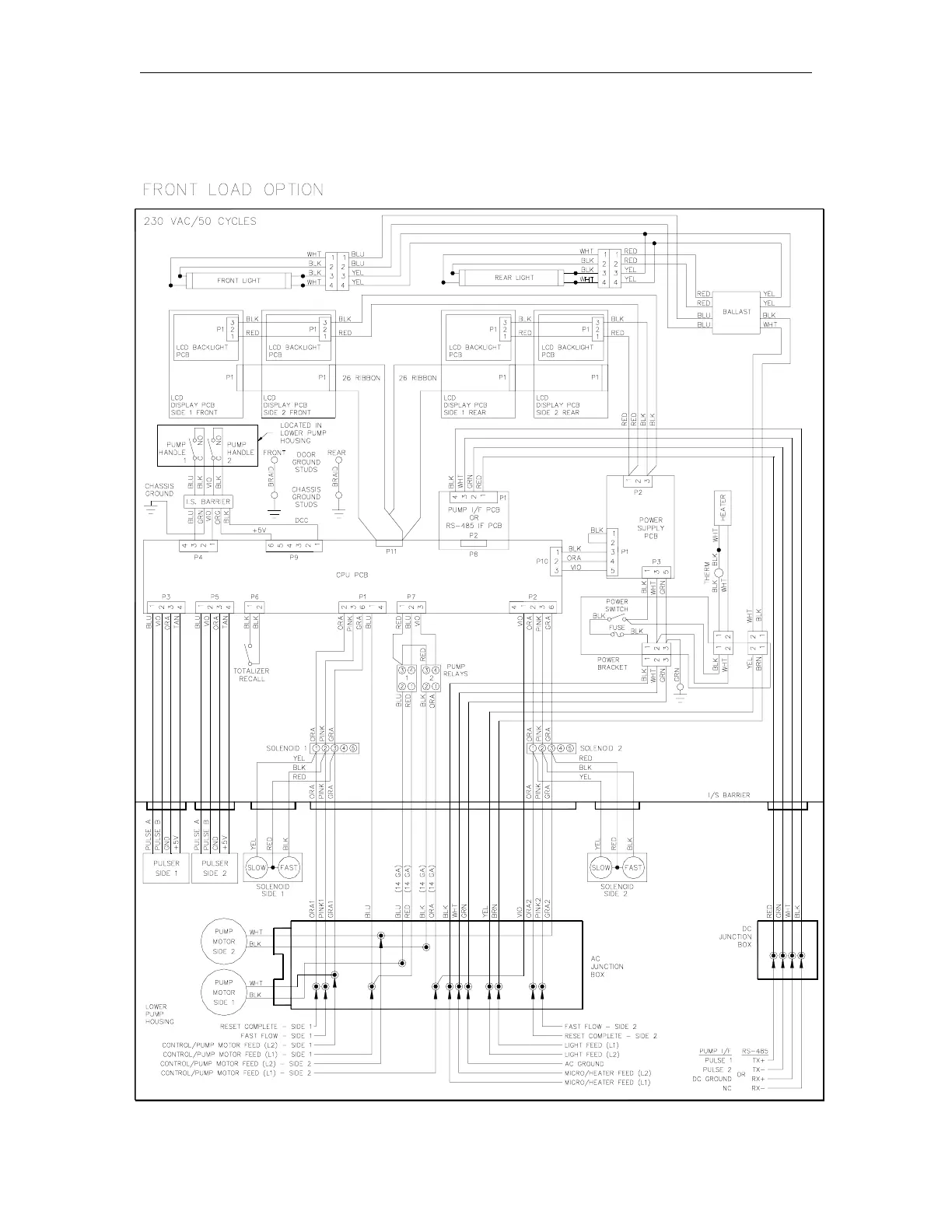 Gasboy 9800A Series - 230 VAC;50 Cycle Front Load Option Pump Wiring